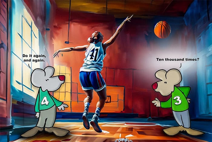And then there are other things to consider. When I played basketball in high school, our coach used to say, “Practice does not make perfect. Practice makes permanent.” And this is true. If you are terrible at shooting free throws and you want to get better, you decide to apply the 10,000 hour rule. BUT. If the technique you are practicing is terrible, you will still be a shoddy free-throw shooter. Repetition doesn’t necessarily make you better. It just makes you permanent. And tired.